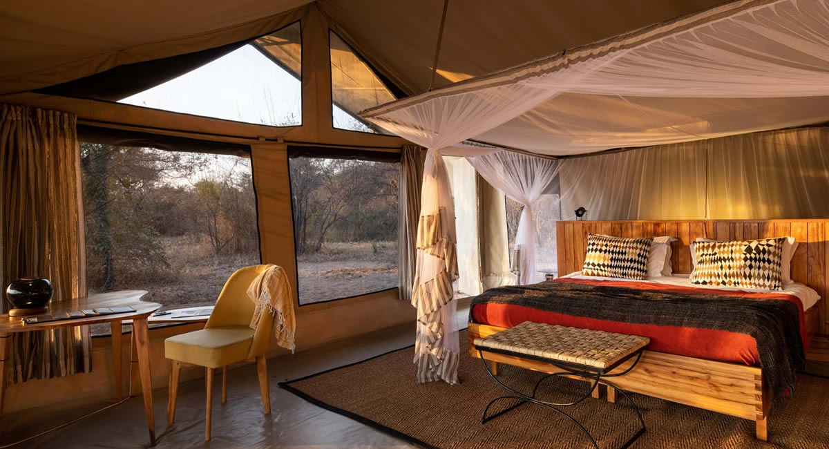 Set deep in the bush, on a hillside with magnificent views of the Ruaha National Park, Kwihala Camp offers stylish luxury in an area known for its remarkable concentration of wildlife. This elegant and intimate camp offers just six Art Deco-style canvas tents, furnished in a simple yet sophisticated safari style, with comfortable ensuite bathrooms, flushing toilets and safari bucket showers. Large gauze-screened windows allow the beauty of the surroundings to take centre stage, and shaded private verandas provide the perfect spot to watch the game passing through the camp.